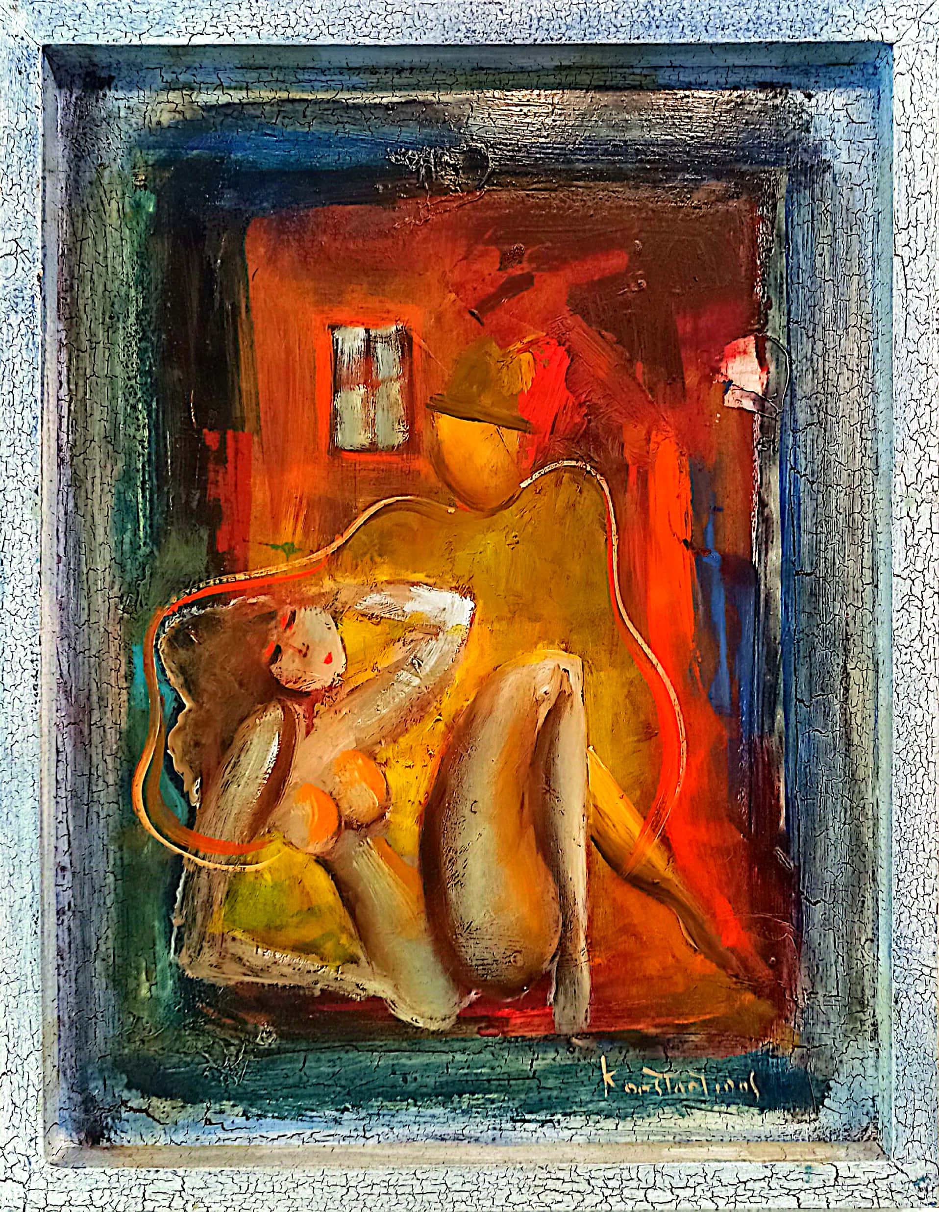 Χειροποίητη μοντέρνα ελαιογραφία του καλλιτέχνη K. Κωνσταντίνου με ξύλινη κορνίζα ζωγραφισμένη από τον καλλιτέχνη με πολύ όμορφα φωτεινά χρώματα τα οποία χαρίζουν αμέσως μια πιο ευχάριστη διάθεση και νότα στο χώρο σας.