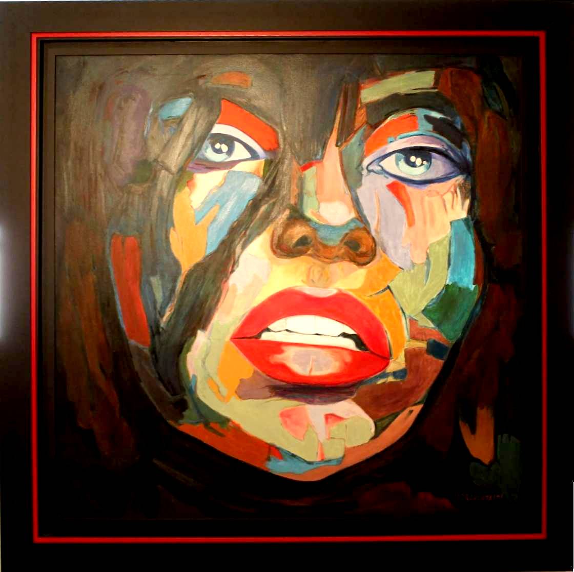 Ελαιογραφία σε μουσαμά με τετραπλή κορνίζα υψίστης ποιότητος και γούστου, εξωτερική μαύρη ματ κορνίζα με μαύρη σκοτία και φίνο κόκκινο πηχάκι που χαρίζει μια ποπ νότα και απογειώνει την αισθητική του χώρου σας.