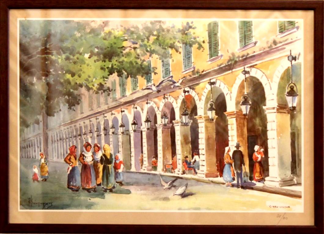 Μεταξοτυπία του καλλιτέχνη Θεόφιλου Κένταρχου, με λεπτή απλή κορνίζα σε χρώμα καρυδί, το οποίο αναδεικνύει τα χρώματα χωρίς να απορροφά την γοητεία του έργου.