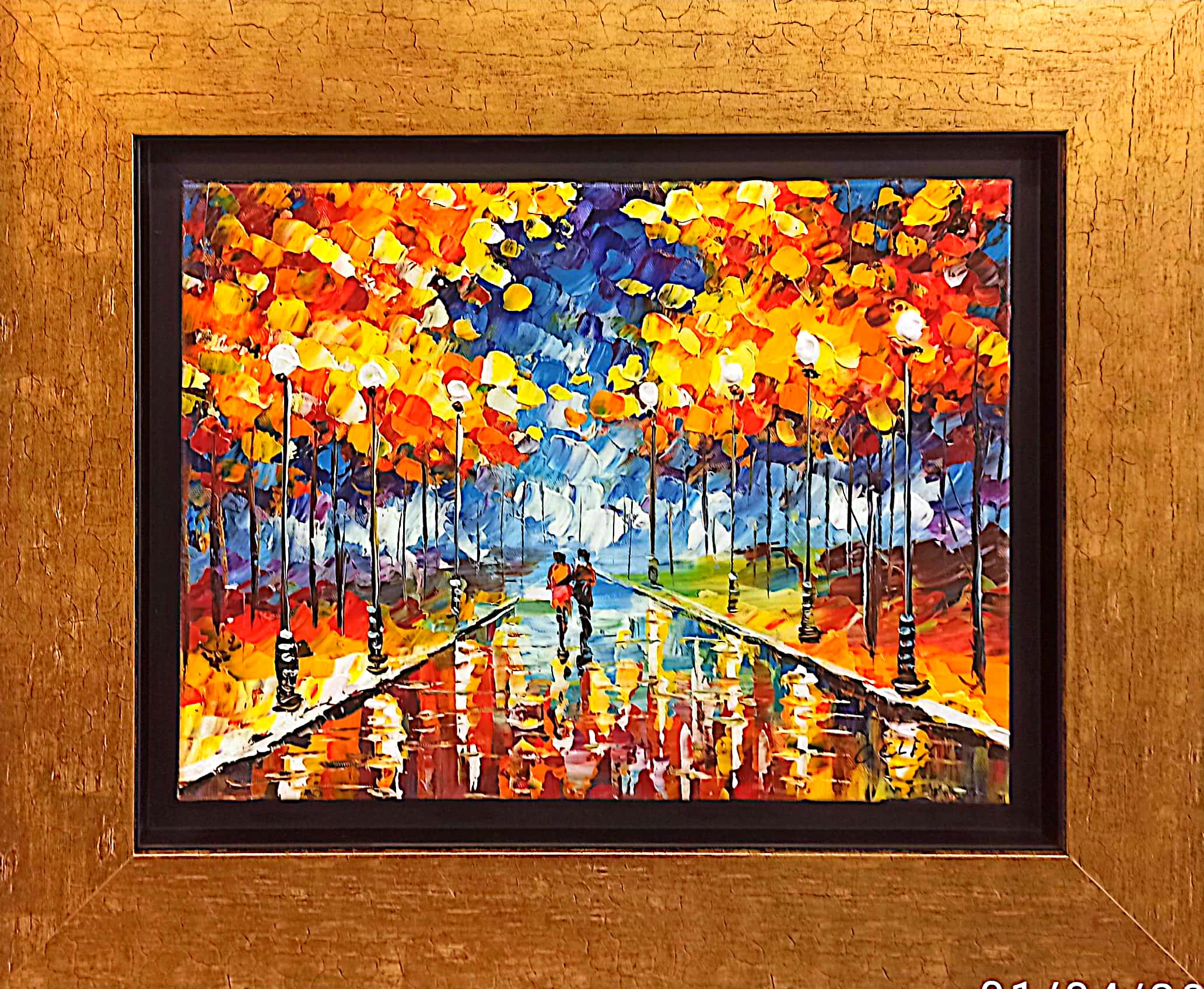 Χειροποίητη ελαιογραφία εισαγωγής του καλλιτέχνη George Cley , η οποία διακοσμείται από ξύλινη χειροποίητη κορνίζα χρυσωμένη με ιδιαίτερο φύλλο χρυσού με κρακελέ στοιχεία, το οποίο του χαρίζει μια vintage εκδοχή μοντέρνο κόψιμο και φινίρισμα.
