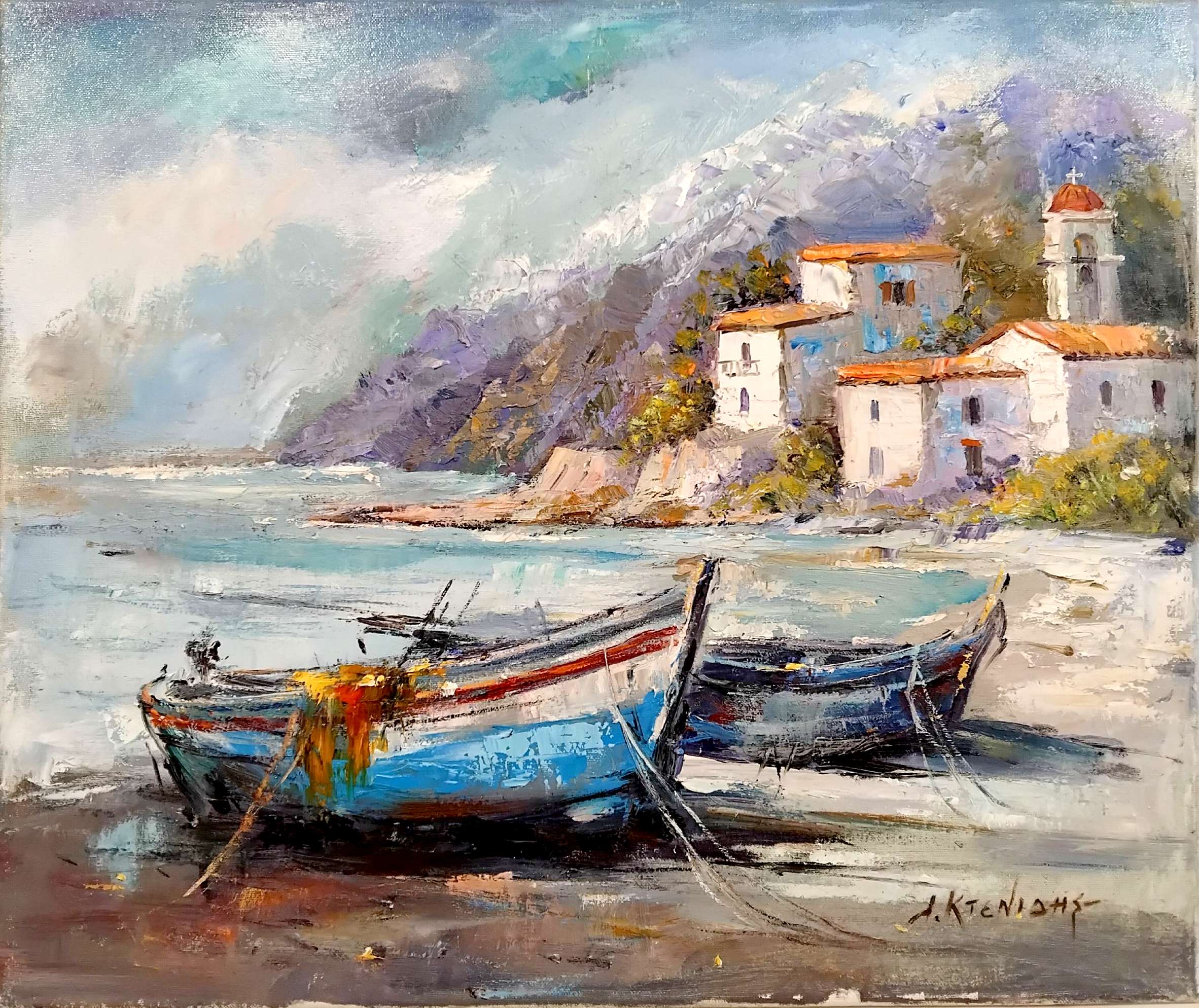 Χειροποίητη ελαιογραφία σε καμβά του καλλιτέχνη Λ.Κτενίδη.